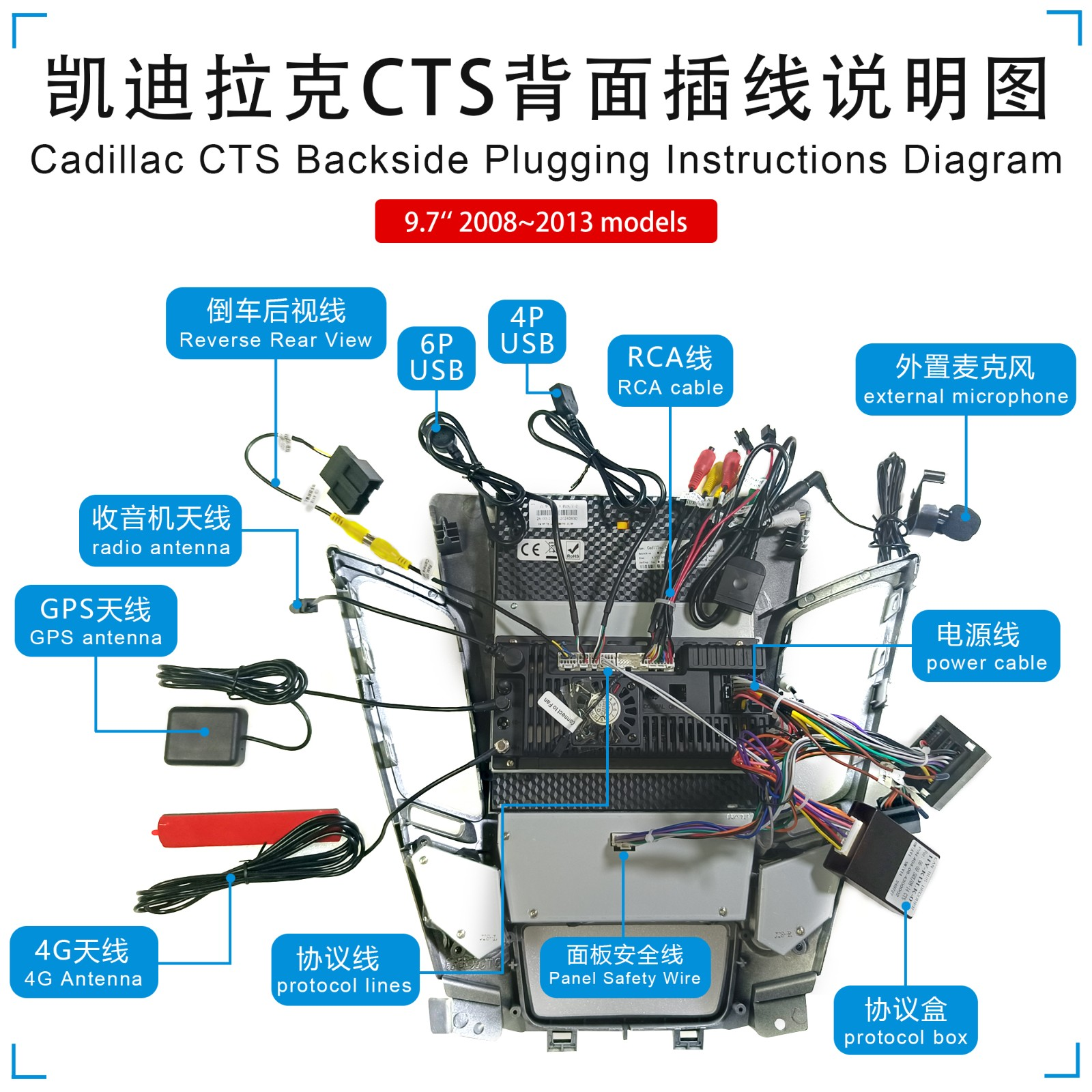 - 🚘【Cadillac CTS 2007-2012 Stereo Multi-Function】: ① Split screen function; ② Phone mirroring link for iPhone Airplay and Android phones; ③ Bluetooth 5.0, hands-free calling, ④ Synchronized contact list; ⑤ GPS navigation, Google Maps and GPS voice guidance; ⑥ Support Rear view camera display supports RCA output for use with aftermarket amplifiers; ⑧ Fully compatible with Stock IN TOUCH.