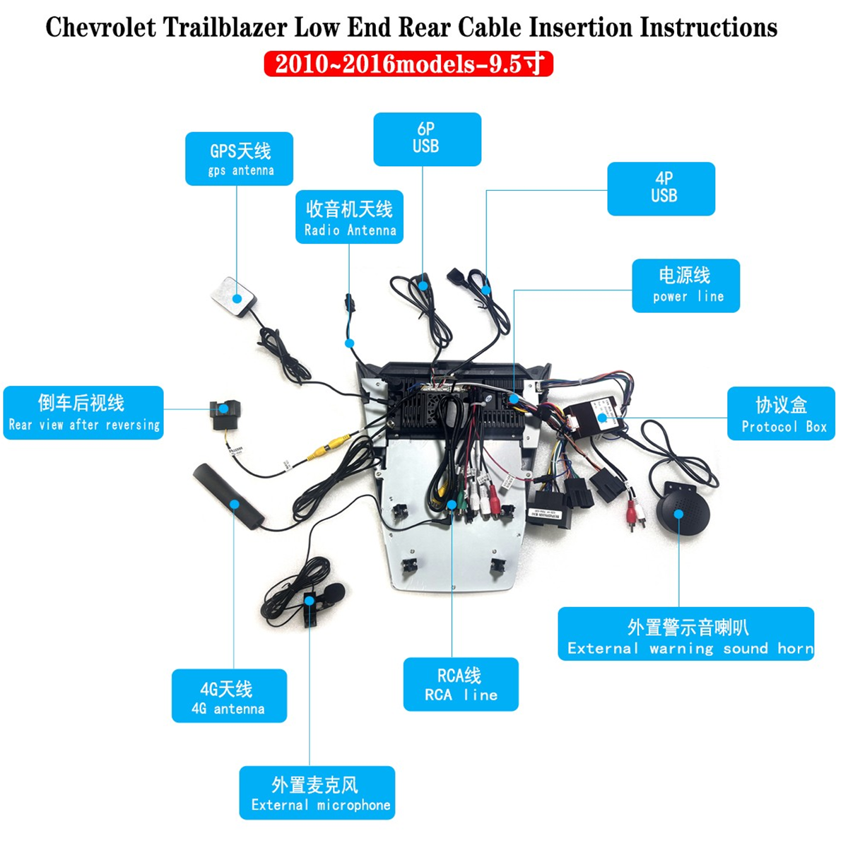 - Backup Camera Input (RCA); Supports AHD Backup Camera too.
